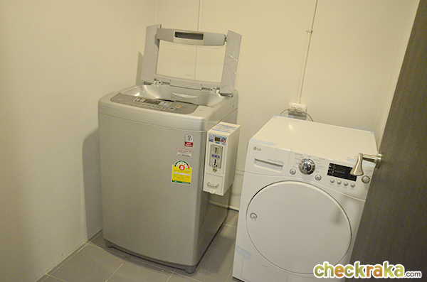 ภายในห้องออกกำลังกายก็ยังมีห้องเล็กๆ อยู่ใกล้กับประตูทางเข้า ที่จัดไว้เป็นจุดวางเครื่องซักผ้าและเครื่องอบผ้าค่ะ