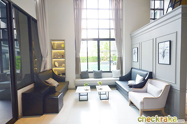 Lobby ของโครงการจะเป็นแบบ double volume เราจะเห็น Fitness จากตรง Lobby นี้ด้วยค่ะ