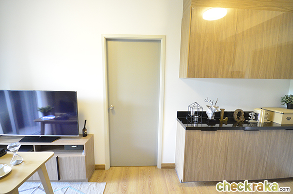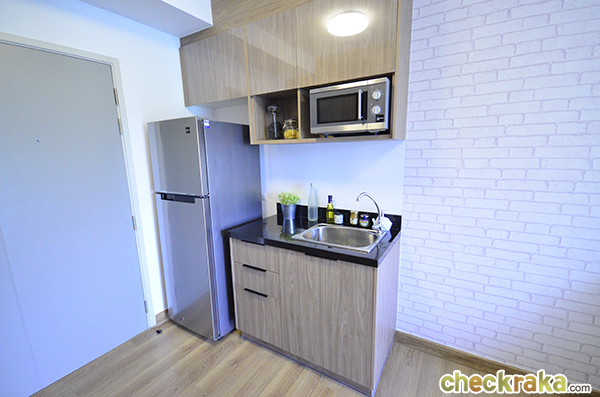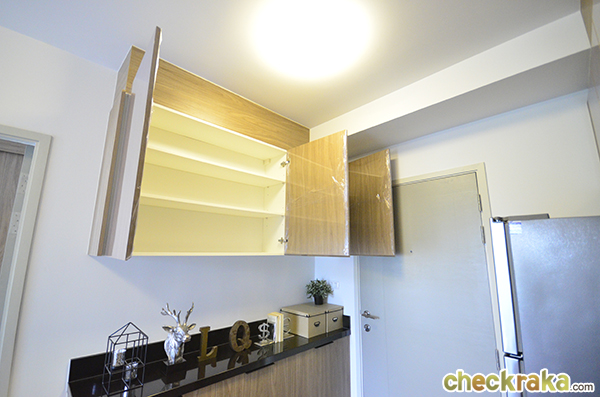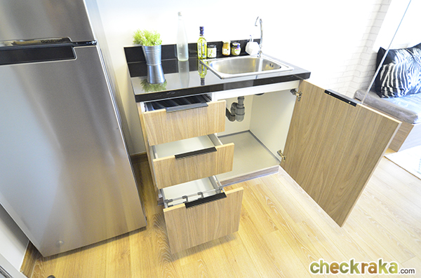 ฝั่งตรงข้ามเป็นพื้นที่เตรียมอาหาร ทางโครงการให้ชุดซิงก์ล้างจานพร้อมตู้เก็บของ
