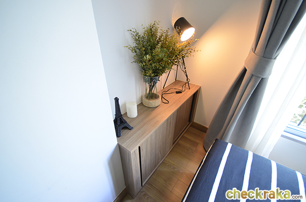 - รูปแบบห้องและวัสดุ - พื้นที่ห้องแต่ละ Type ถึงขนาดห้องจะไม่ใหญ่แต่ทางโครงการก็ได้ออกแบบเฟอร์นิเจอร์ให้เหมาะสมกับขนาดห้องและให้มาครบทุกอย่างตามห้องตัวอย่างเลยค่ะ เฟอร์นิเจอร์ก็คุณภาพดี ใช้ยี่ห้อ Starmark ส่วนพื้นเป็นลามิเนต หน้าต่างบานใหญ่แบบ fix 1 ข้าง สุขภัณฑ์ในห้องน้ำของ Cotto ระเบียงก็ใช้งานได้จริง ไม่ได้คับแคบค่ะ