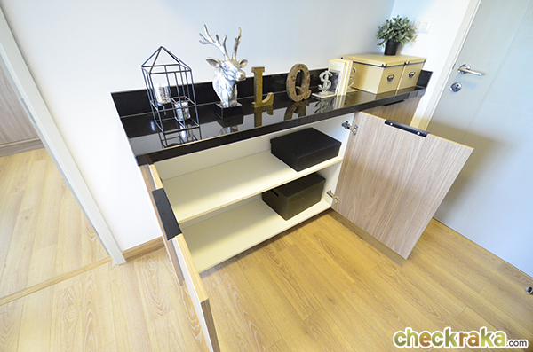 มาดูชั้นวางของและเก็บของกันบ้างค่ะ เฟอร์นิเจอร์ทั้งหมดจะเป็นของ Starmark ที่ออกแบบให้กับทางโครงการโดยเฉพาะ