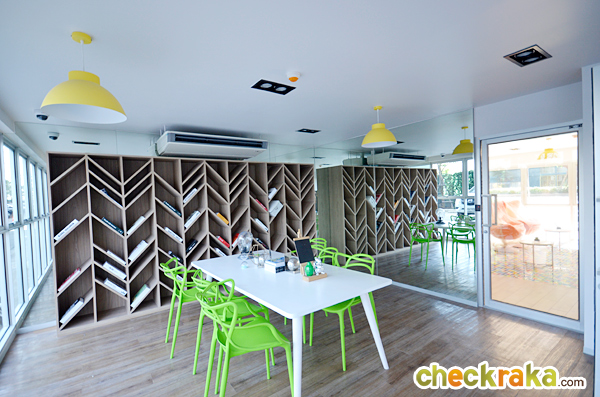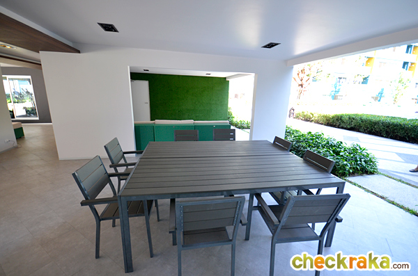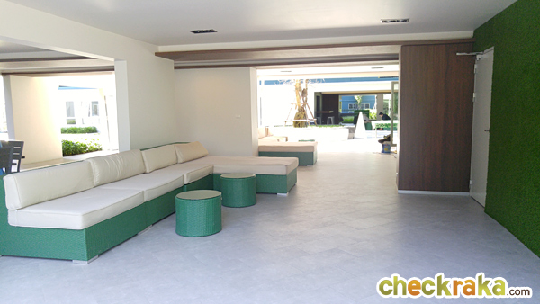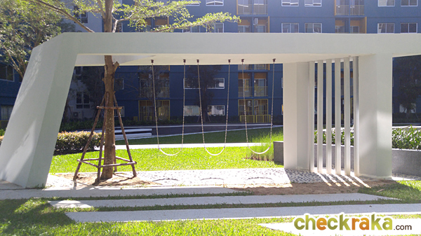 มีพื้นที่นั่งเล่นพักผ่อนใต้อาคารที่เชื่อมกับสวน สามารถมานั่งเล่นได้ตลอดวัน