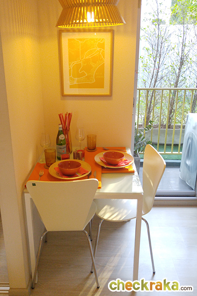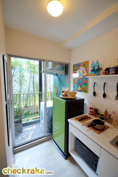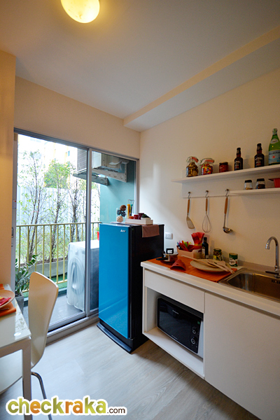 ด้านข้างของห้องครัวติดกับระเบียง เวลาทำอาหารสามารถเปิดประตูระเบียงเพื่อช่วยระบายกลิ่น และอากาศได้