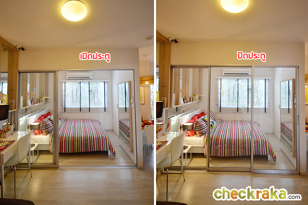 ส่วนถัดมาเป็นห้องนอน พร้อมประตูกั้นห้องแบบบานเลื่อน 3 ตอน กรอบเป็นอลูมิเนียมสีธรรมชาติ