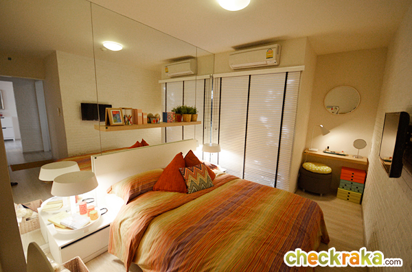 ในห้องนอนเหมาะสำหรับวางเตียงขนาด 5 ฟุต ตั้งชิดผนังฝั่งหน้าต่าง
