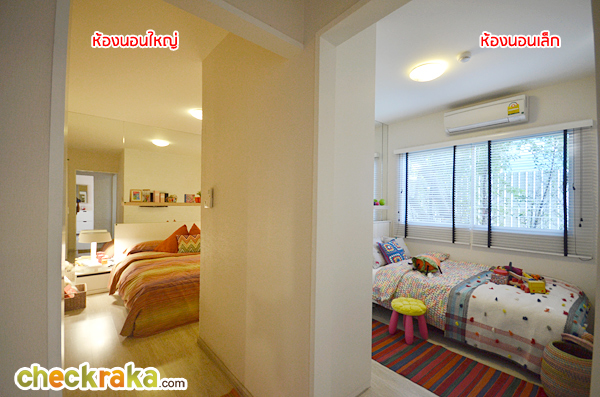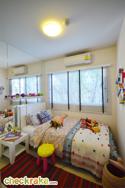 ในห้องนอนเล็กค่อนข้างมีพื้นที่จำกัด เหมาะสำหรับวางเตียงแบบ 3.5 ฟุต