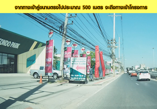 จากถนนใหญ่ขับตรงเข้ามาประมาณ 140 เมตร จะเห็นประตูทางเข้าโครงการของเฟส 1 อยู่ทางซ้ายมือ