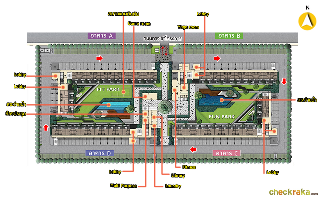 - ห้องเกม สำหรับทำกิจกรรม มีโต๊ะปิงปอง (เฉพาะเฟส 1)