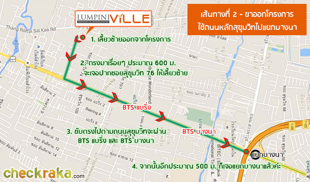 เส้นทางออกที่ 2 - ขาออกโครงการใช้ถนนหลักสุขุมวิทไปแยกบางนา