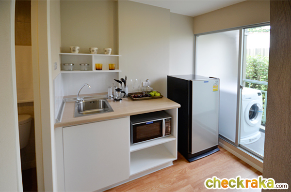 และได้ช่องเก็บของตรงกลางเพิ่มมากขึ้น ด้านขวาของครัวติดกับระเบียงช่วยระบายกลิ่นเวลาทำอาหารได้ดี