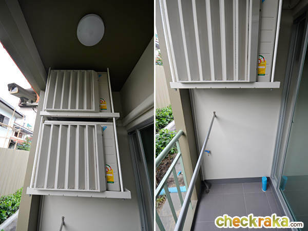 คอมเพรสเซอร์ติดอยู่ทางผนังด้านขวาของระเบียง บนเพดานได้ไฟดาวไลท์ 1 ดวง