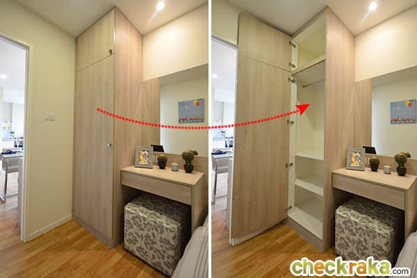 ปลายเตียงเป็นตำแหน่งของตู้เสื้อผ้าแบบ Built-in เปิดมาด้านในเป็นแบบนี้ค่ะ
