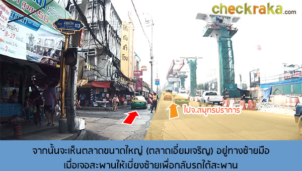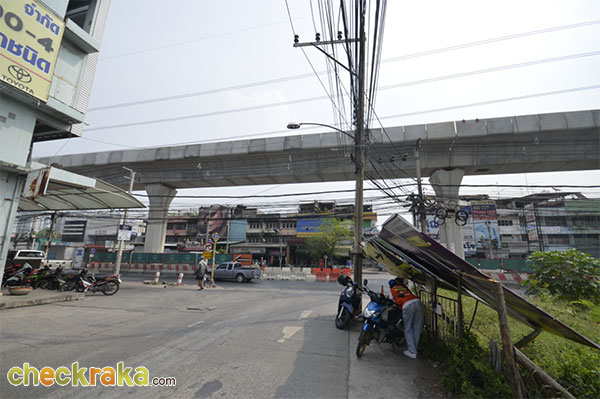 ตั้งอยู่ระหว่างสะพานข้ามคลองสำโรงกับแยกเทพารักษ์ โดยจะอยู่ใกล้ตัวโครงการมากขึ้น