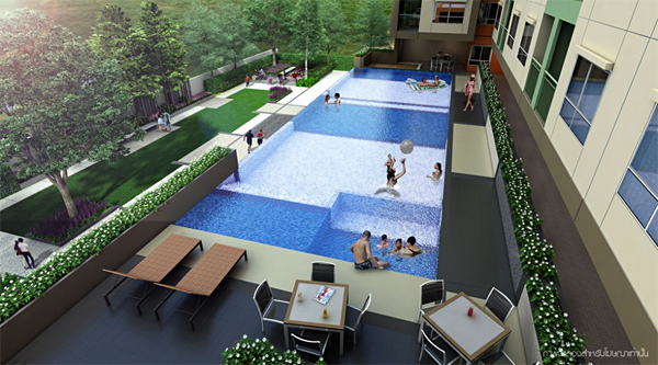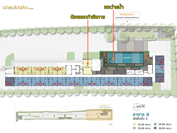 - ชั้น 2 จะมีสระว่ายน้ำ, ห้องฟิตเนส และส่วนพักอาศัย