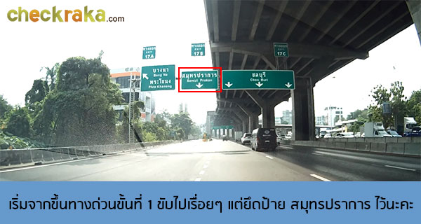 เส้นทางออกที่ 1 - ขาออกโครงการเลี่ยงถนนสุขุมวิท วิ่งเส้นสรรพาวุธเพื่อไปขึ้นทางด่วน