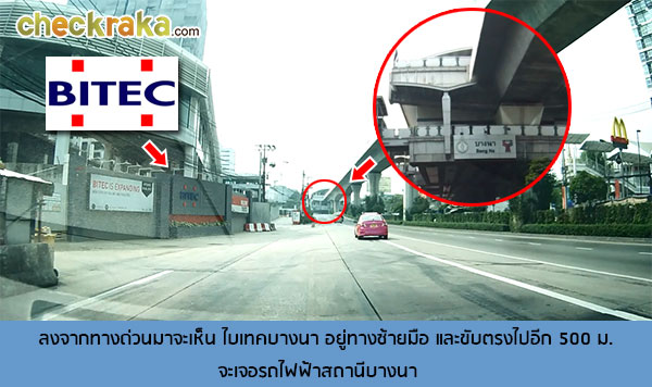 เส้นทางเข้าที่ 1 - ขาเข้าโครงการลงจากทางด่วนขั้นที่ 1 ผ่านไบเทค บางนา
