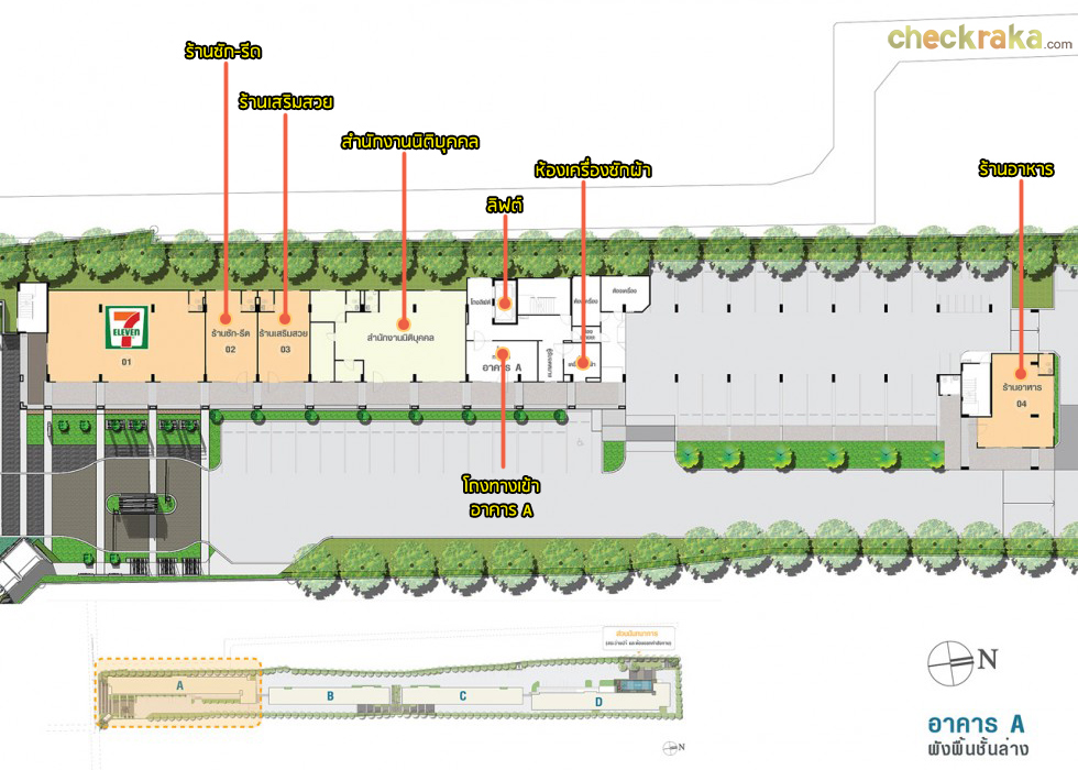 - ที่จอดรถ : ประมาณ 30% แบบรวมจอดซ้อนคัน
