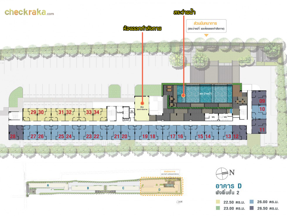 - ชั้น 2 จะมีสระว่ายน้ำ, ห้องฟิตเนส และส่วนพักอาศัย