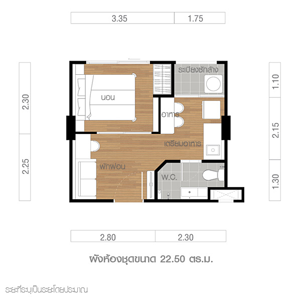 - ห้องแบบกั้นส่วนนอน พื้นที่ใช้สอย 22.50 ตร.ม.