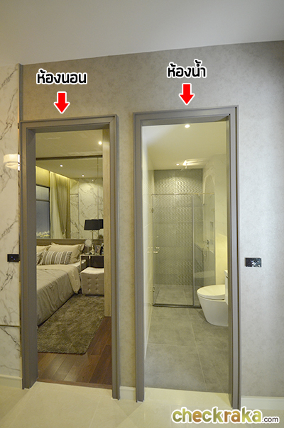 ห้องนอนและห้องน้ำจะอยู่ติดกันเลย เดี๋ยวเราไปดูห้องนอนกันก่อนดีกว่าค่ะ