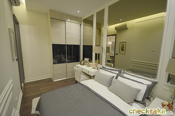 เฟอร์นิเจอร์ที่ได้ก็จะมีเตียงขนาด 5 ฟุต ตู้เสื้อผ้าบิวท์อิน