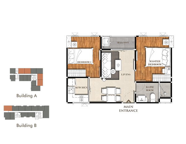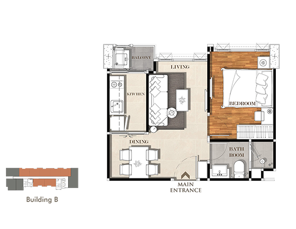 - B2 43.84 - 44.10 ตร.ม. (คลิกเพื่อชมแปลนห้อง)