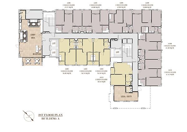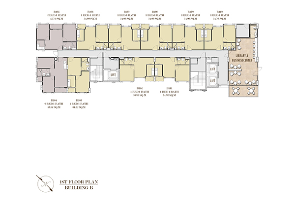 - A1 พื้นที่ใช้สอย 34.79 - 34.99 ตร.ม. (คลิกเพื่อชมแปลนห้อง)