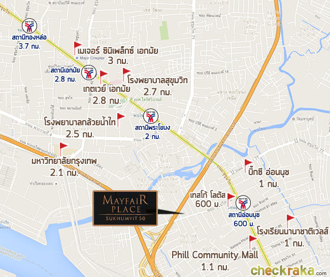 แผนที่โครงการ "เมย์แฟร์ เพลส สุขุมวิท 50 (Mayfair Place Sukhumvit 50)"