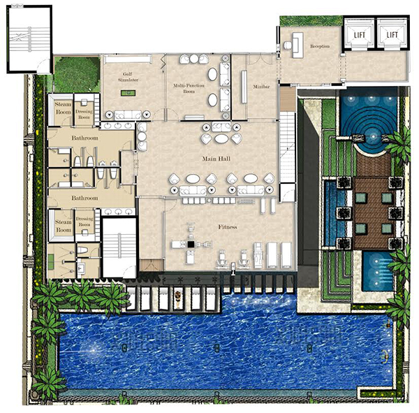 - สระว่ายน้ำ (สระเด็กและสระผู้ใหญ่)