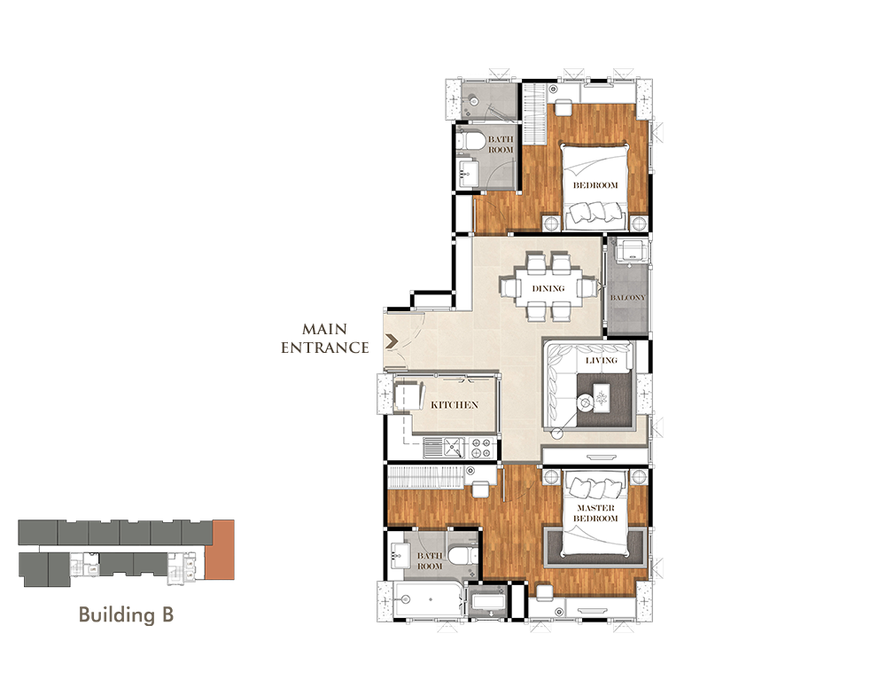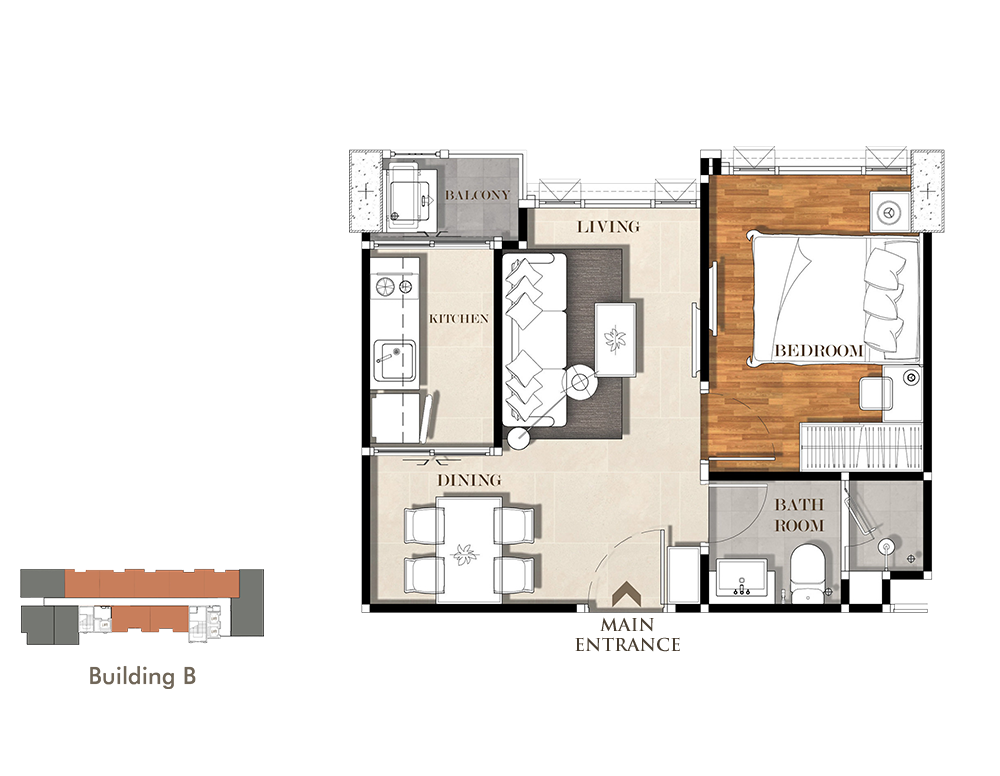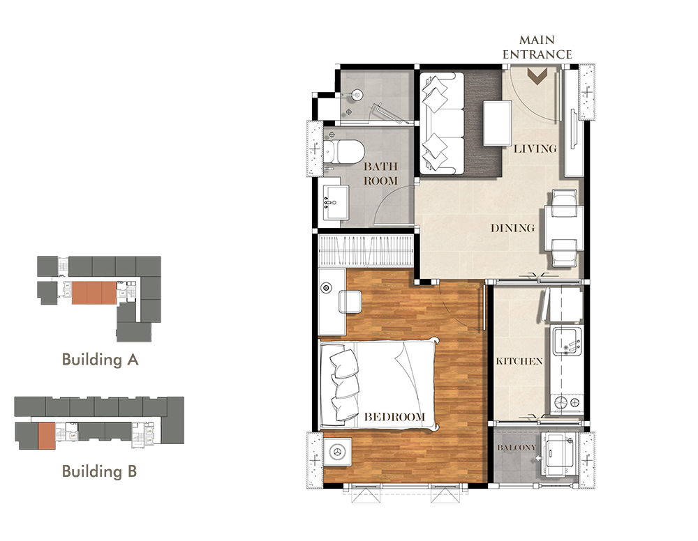 - B2 43.84 - 44.10 ตร.ม. (คลิกเพื่อชมแปลนห้อง)