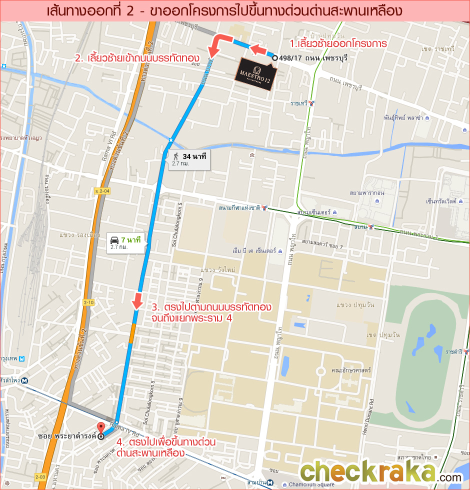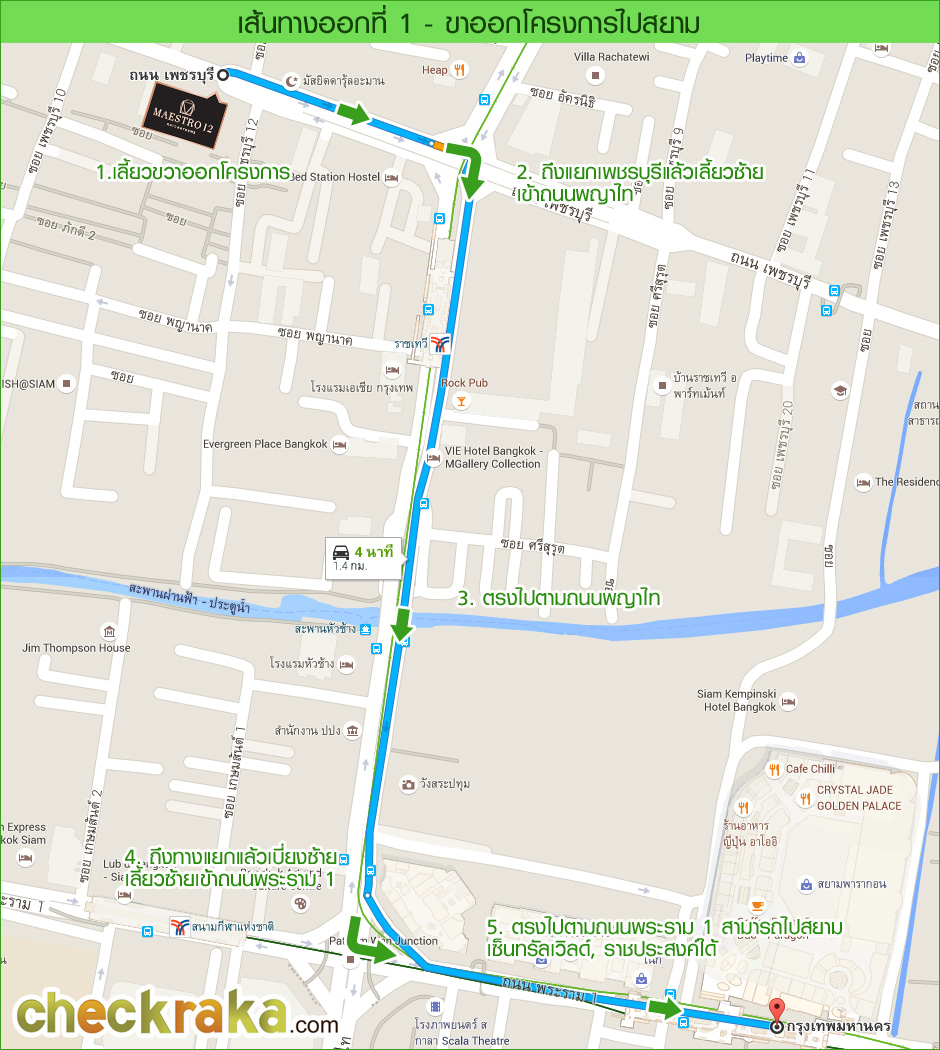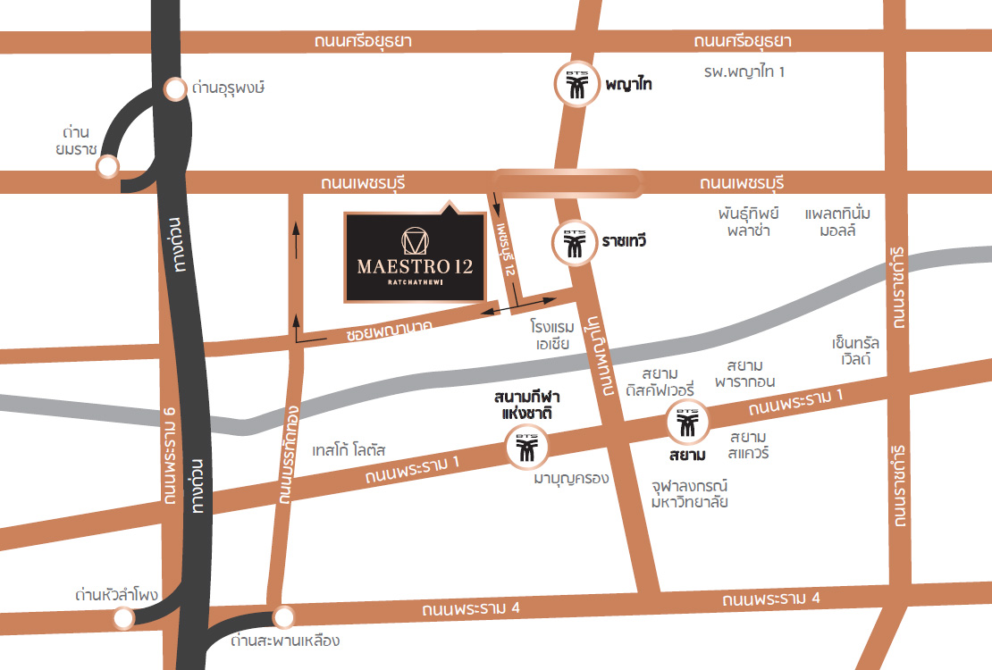 แผนที่การเดินทางจากโครงการไปยังรถไฟฟ้าสถานีราชเทวี