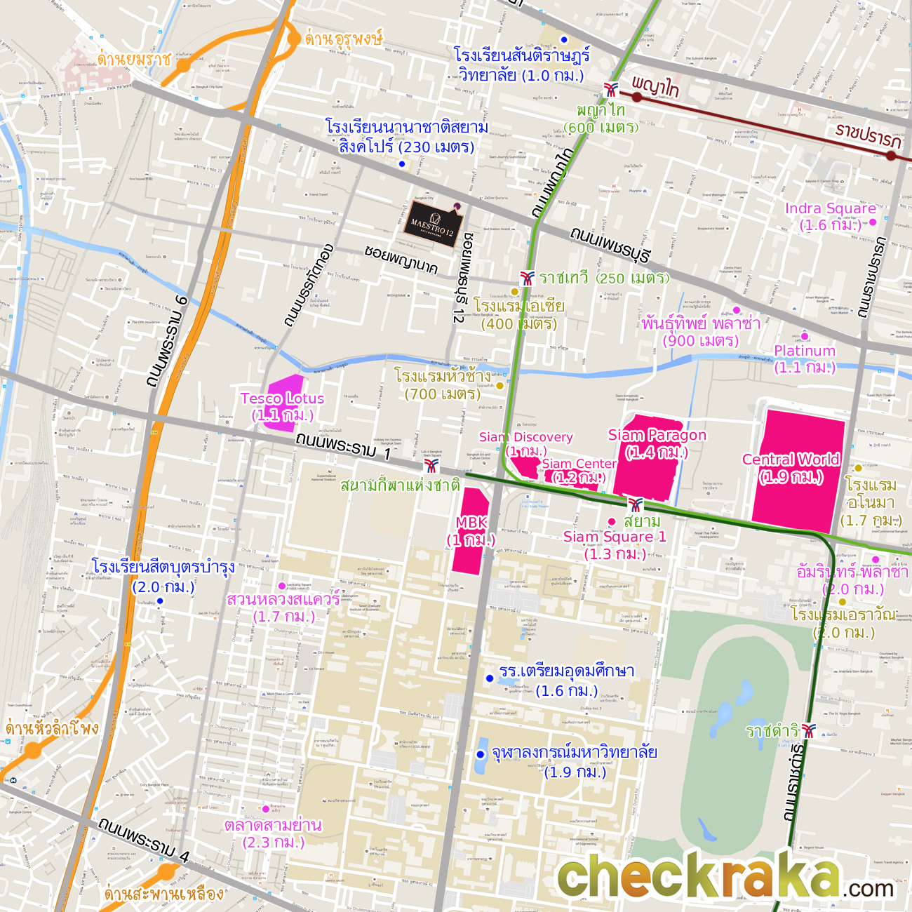 Central World ห่างจากโครงการประมาณ 1.9 กม.