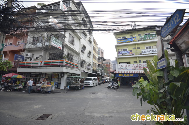 เดินมาจนเจอทางแยก บริเวณนี้จะเริ่มคึกคักขึ้นมา มีร้านอาหารไทย และร้านสเต็ก