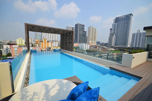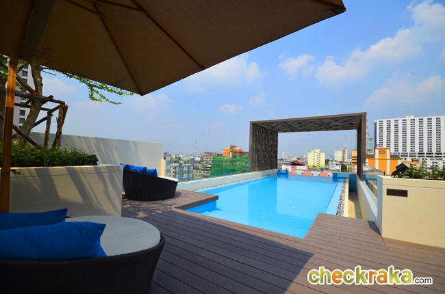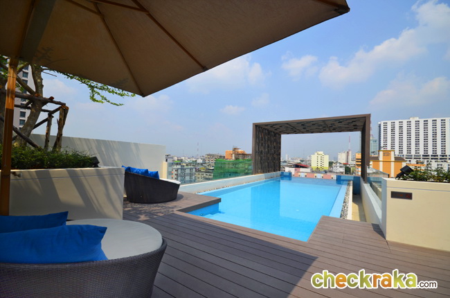 สระว่ายน้ำของโครงการเป็นแบบ Infinity Edge Pool ระบบเกลือ และมี Step ขั้นบันได