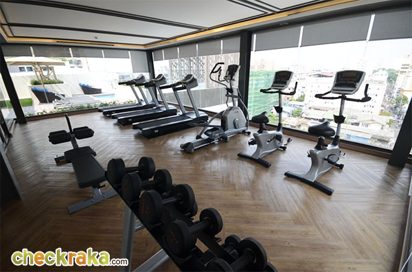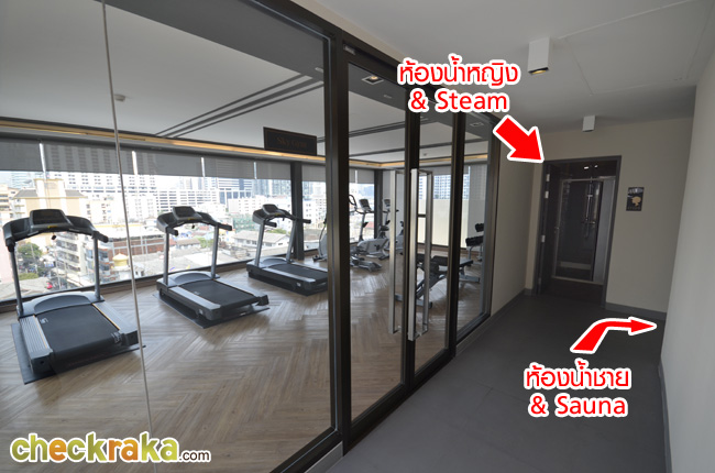 ห้องฟิตเนสถูกออกแบบให้เป็นกระจกบานใหญ่ ออกกำลังกายไปด้วยชมวิวเมืองไปด้วยเพลินดีค่ะ