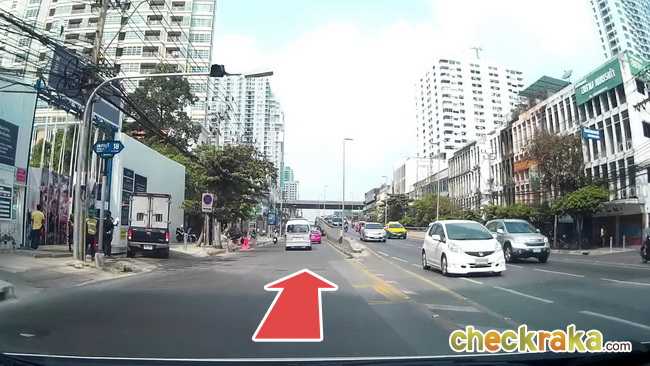 มาถึงบริเวณซอยเพชรบุรี 18 ไม่ต้องขึ้นสะพานข้ามแยก จากนั้นให้เบี่ยงไปเลนขวา