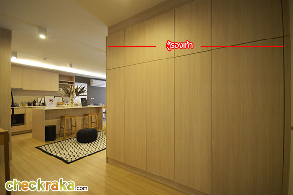 เปิดประตูเข้ามาเฟอร์นิเจอร์ชิ้นแรกที่เห็นคือตู้รองเท้า+ตู้เก็บของสูงเสมอเพดาน