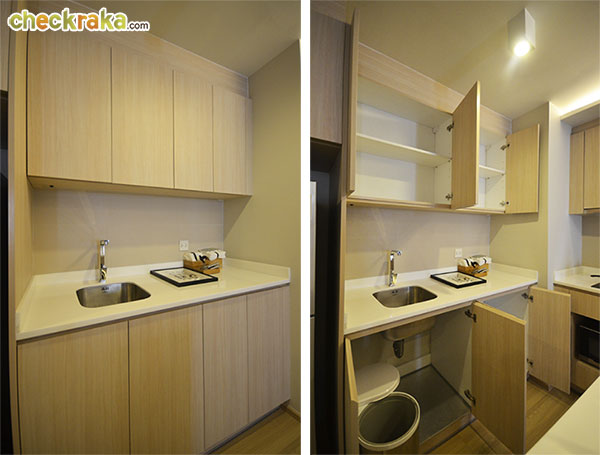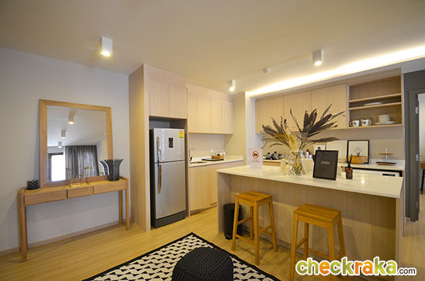หลังจากที่ตกใจกับตู้รองเท้าขนาดใหญ่ โซนแรกที่จะเจอคือห้องครัว (แบบเปิด) เฟอร์นิเจอร์ Built in