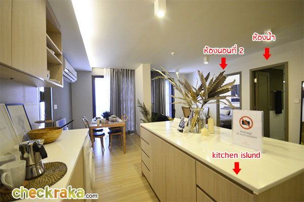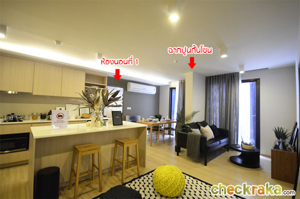 เดินออกมาจากห้องนอนแรกกันค่ะ ขวามือคือโซนครัวเปิดที่ได้พูดถึงกันไปแล้ว