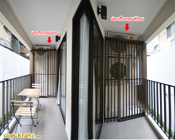 ที่มาก และยาวอยู่พอสมควรค่ะ ช่องเก็บคอยล์ร้อน ก็ทำเป็นกริลมีประตูปิดเรียบร้อยเพื่อกันลมร้อนพัดเข้าไปในห้อง