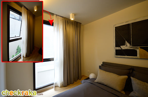 มีหน้าต่างบานกระทุ้งขนาดใหญ่อยู่ข้างเตียงค่ะ