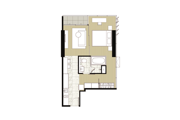- Typical F พื้นที่ใช้สอย 31.00 - 31.50 ตร.ม. (คลิกเพื่อชมแปลนห้อง)