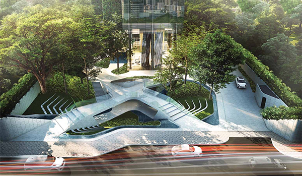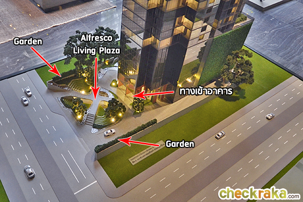 Alfresco Living Plaza ถูกออกแบบให้เป็นพื้นที่สีเขียวหน้าโครงการ