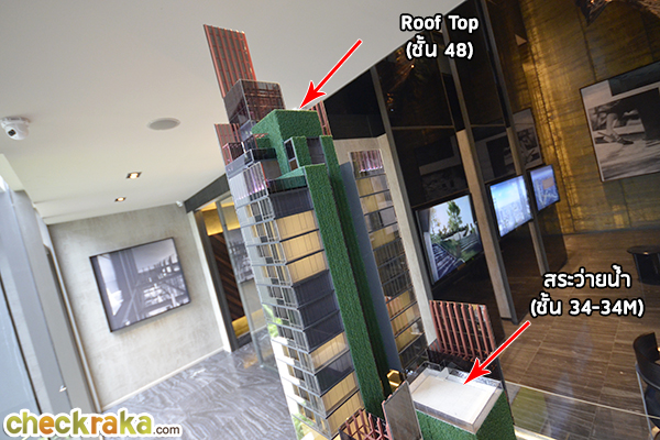 ชั้น 34-34M เป็นชั้น Facilities เช่น สระว่ายน้ำระบบโอโซน, ฟิตเนส, ซาวน่า, ออนเซ็น, จากุซซี่, ฯลฯ