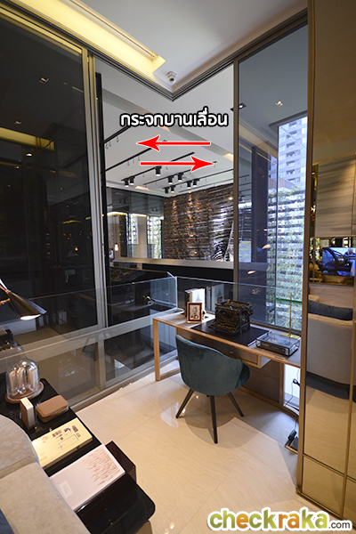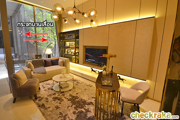 ห้องรับแขกจะมีกระจกบานเลื่อนเข้ามุม ที่สามารถเลื่อนเปิด-ปิด รับอากาศจากภายนอกได้