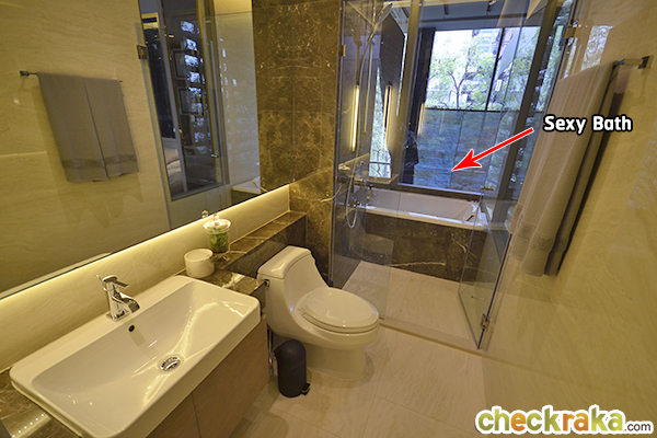 แยกส่วนแห้งกับส่วนเปียกชัดเจน มีฉากกั้นอาบน้ำและ Sexy Bath