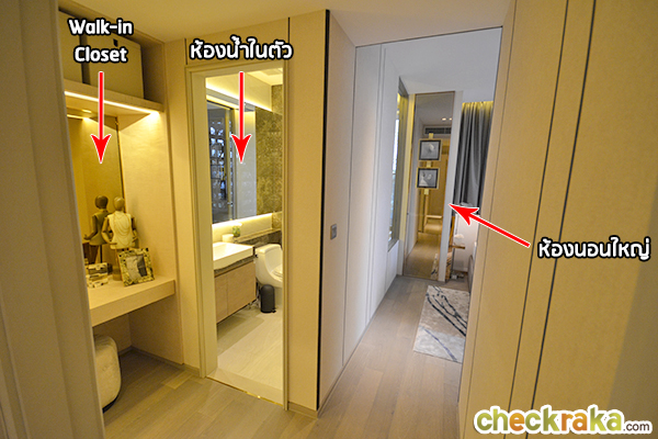 ทางเชื่อมไปห้องน้ำ, ห้องนอนเล็ก และห้องนอนใหญ่ ความสูงจากพื้นถึงเพดาน 2.7 เมตร