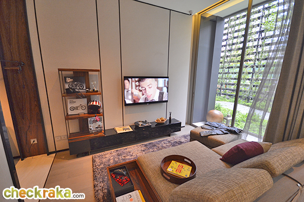 - รูปแบบห้องและวัสดุ - ห้องพักอาศัยเริ่มต้นตั้งแต่ 31 ตร.ม. ความน่าสนใจของห้องทุกแบบ คือ "กระจกสูงตั้งแต่พื้นจรดเพดาน" ทำให้ทุกห้องสามารถ Take View ได้อย่างเต็มที่ บริเวณระเบียงออกแบบมาให้เป็นระเบียงกระจกไม่ใช่ระเบียงเหล็กแบบทั่วไป และความน่าสนใจอีกอย่างของห้อง 2 Bedroom คือกระจกเข้ามุมสามารถเลื่อนเปิด-ปิดได้ ทำให้สามารถระบายอากาศจากภายในห้องหรือรับลมเย็นๆ จากภายนอกได้ และลูกเล่น Vertical Interlocking พื้นเล่นระดับแบ่งห้องให้เป็นสัดส่วนมากขึ้น ตัวห้องไม่ได้ขายแบบ Fully Furnished จะให้เพียงในเคาน์เตอร์ครัว (ให้ไมโครเวฟสำหรับ 2 Bedroom), เครื่องปรับอากาศ (แบบฝังฝ้า) และสุขภัณฑ์ภายในห้องน้ำ