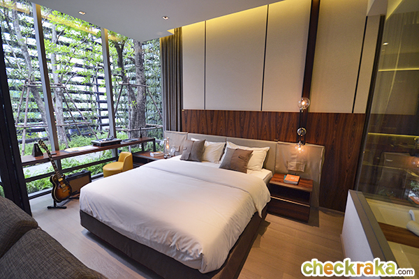 ด้านข้างหลังจากวางเตียงนอนแล้ว ยังเหลือที่ว่างให้ตั้งโต๊ะทำงานหรือโซฟาสำหรับนั่งชมวิวได้อีก