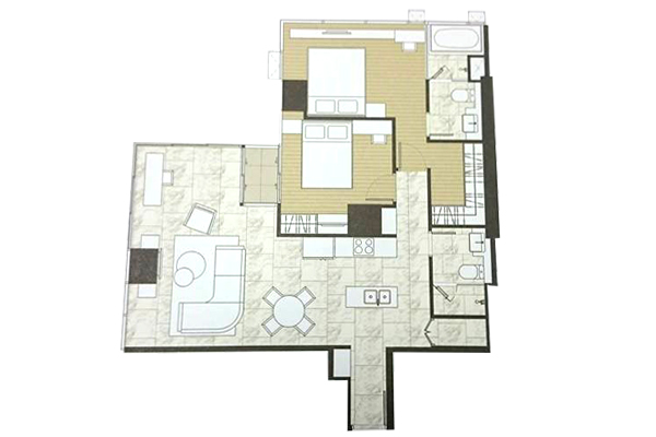 ห้องแบบ 2 ห้องนอน 2 ห้องน้ำ :